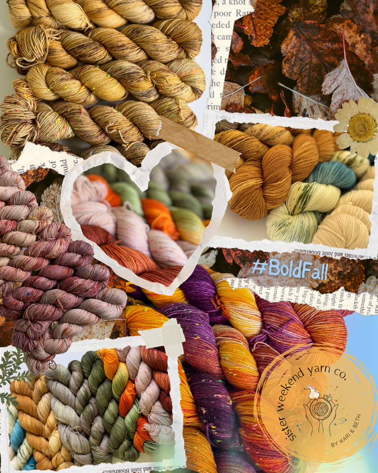 In contrast to last year's Soft Autumn Collection, Bold Fall is what it says it is! Bold in both color and dye style, this palette's intensity pairs delightfully with our Soft Autumn colors!